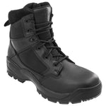Worn by the world's leading public safety personnel, the 6" A.T.A.C. 2.0 Side Zip Tactical Duty Boots for Men from 5.11 Tactical arrive ready for action. Now with a lighter and more comfortable build, these tactical boots maintain their toughness and durability for the demanding tasks you face. The A.T.A.C. 2.0's advanced leather and 840 denier nylon performance uppers feature a polishable full grain leather toe, Achilles flex zone for better maneuverability, and a YKK side zipper for easy on and off at either end of a shift. Its new airflow tongue provides maximized airflow to your foot for optimal comfort in warm conditions, while Agion odor fighting treatments in the linings help keep feet feeling fresh. Offering advanced cushioning under your feet, the full length, dual durometer Ortholite footbeds combine a bottom layer of high cushion/high rebound Ortholite X25 foam with a top layer of Ortholite Lazy recovery foam for top comfort. A Shock Mitigation System design, the A.T.A.C. midsole and outsole provide lightweight traction and support you can trust without weighing you down. Stable and durable strobel construction. Average height: 6". Imported.