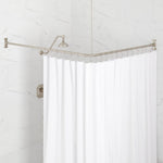 72" x 36" Corner Brass Shower Rod WITH Flanges and Ceiling Support-Brushed Nickel