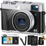 ACTITOP 4K Digital Camera for Photography with Viewfinder 48MP Vlogging Camera for YouTube with 32GB Card 16X Autofocus Anti-Shake Travel Portable Video Camera Camcorder - Black