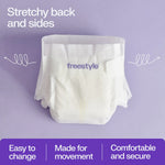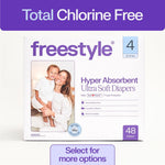 Freestyle Hyper Absorbent Ultra Soft Baby Diapers are engineered to provide exceptional comfort and protection for newborns, infants, and toddlers. Featuring an innovative 7-layer design that combines a proprietary SAP Matrix with Total Chlorine Free Wood Pulp and cotton, these diapers absorb moisture efficiently to keep your baby dry and comfortable throughout the day and night. The cloud-like softness ensures gentle care for delicate skin while the super-stretchy back and sides offer a secure yet flexible fit that adapts to your baby's movements. Quilted channels evenly distribute wetness to prevent leaks, and the dual-lined wetness indicator clearly signals when it's time for a change. All materials are lab tested to be free from PFAs, BPAs, phthalates, fragrances, and chlorine, making these diapers a safe choice for sensitive skin. With 48 unisex diapers in size 4, this pack delivers reliable performance and peace of mind for parents seeking high-quality diapering solutions.