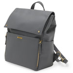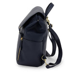 [MoDRN Diaper Bag Backpack, Navy:Stylish and sleek backpack style diaper bagBag comes with extra strap to convert to crossbodyStraps can convert from backpack to crossbodyMagnetic flap closure, top zip main compartment closure, and interior zip pocket help keeps your items secure and organizedAccess your baby wipes quickly with the exterior wipe holder2 outside and interior side pockets are great for storing extra bottles, snacks, toys, and moreFeatures gold hardwareIncludes a large changing padChanging pad dimensions: 26.5" x 17" x .125?Overall dimensions: 13" x 14.5" x 6"Made from vegan leather]