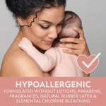 - Formulated without lotions, parabens, fragrances, natural rubber latex and elemental chlorine bleaching