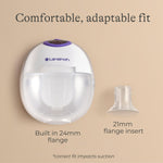 The Lansinoh Discreet Duo Wearable Breast Pump is engineered to provide busy mothers with freedom and flexibility during milk expression. Its wireless, hands-free design allows users to pump discreetly without cords or tubes, fitting seamlessly into daily routines. The ergonomic design ensures a comfortable fit within most bras, while the inclusion of two flange sizes (24mm and 21mm) helps maximize comfort and efficiency. This electric breast pump features hospital strength suction with nine adjustable levels across four pumping modes, enabling customization to suit individual preferences and optimize milk output. The LED display simplifies monitoring and adjusting settings during use. Operating quietly at less than 45 decibels, it supports a peaceful pumping experience without disruption. The closed system design maintains hygiene by preventing milk backflow, and the silicone flanges are free from BPS and BPA, ensuring safety for both mother and baby. With a rechargeable lithium-ion battery offering up to 100 minutes of continuous pumping per charge and an automatic shut-off after 20 minutes, this pump balances performance with convenience. Ideal for carrying in any breast pump bag alongside other essentials, the Lansinoh Discreet Duo supports mothers with trusted quality from a brand dedicated to breastfeeding solutions worldwide.