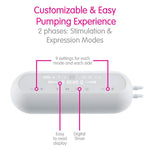 • Customizable Suction Levels: Nine suction levels per side in both expression and stimulation modes allow personalized pumping settings.