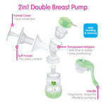 MAM 2-in-1 Double Electric Breast Pump, Dual Electric and Manual Modes, Leak-Proof Closed System, Soft Silicone Funnels, Portable Design, Includes 2 Anti-Colic Bottles, Green