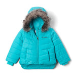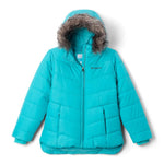 Built for outstanding warmth even in extreme cold, the Columbia Katelyn Crest III Hooded Jacket for Kids makes a wise choice for performance and value. This Columbia kids' jacket has the exclusive Storm-Lite DP II shell for great weather resistance. Powerful Farenhot 240-gram Insulation provides fantastic warmth without the weight or bulk of ordinary kids' insulated jackets. The acclaimed OUTGROWN system lets this Columbia jacket for kids extend when they hit a growth spurt, so it fits today and tomorrow. The attached, adjustable hood shields against wind, rain, and snow, and the full-zip front with chin guard means no more zipper pinch. Zip hand pockets secure essentials, and removable faux fur on the hood gives extra protection against the elements. A droptail hem enhances coverage, completing the Columbia Katelyn Crest jacket as the smart pick to keep kids warm, stylish, and comfortable for the long haul. Shell: 100% polyester. Lining: 100% nylon 210T taffeta. Insulation: 100% polyester.