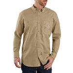 If you work around flames and fire, The Carhartt Flame-Resistant Force Button-Front Long-Sleeve Shirt for Men delivers an extra measure of on-the-job safety. The rugged 4.7-oz. twill fabric of this men's shirt is made of 50% Lenzing/38% aramid/10% polyamide/2% anti-stat. This advanced blend is not only flame-resistant, it also boasts these inherent properties: moisture wicking, fast drying, colorfastness, anti-static, and wrinkle-resistant. Plus, this hearty fabric meets the performance requirements of NFPA 70E/ASTM F1506 for flame-resistant clothing and is UL classified to NFPA 2112. Plus, there are Carhartt FR and NFPA 2112/CAT 2 labels sewn onto the sleeve placket for quick reference. Carhartt Force and FastDry technologies help keep you cool by wicking away sweat, while an odor-fighting finish keeps you feeling fresh. Triple-stitched main seams maximize durability. Also features a button-down collar with button closure, 2 chest pockets with button closures, and extended sleeve plackets with button-adjustable cuff. Wear the Flame-Resistant Force Button-Front Long-Sleeve men's shirt alone or as a hardworking base layer in colder months. Machine wash. Imported.