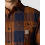 Crafted from beefy 8-oz. 100% cotton flannel, the Carhartt Loose-Fit Heavy Weight Long-Sleeve Flannel Shirt for Men comes through with extra comfort and warmth on cold days. The brushed fabric offers a soft, broken-in feel straight off the hanger thanks to a garment-washing process that also helps limit shrinkage. Reinforced with triple-stitched main seams, the construction holds up through tough conditions and repeated use. A spread collar lends a classic look, while pleats along the back yoke seam allow natural movement through the shoulders. For fit adjustments, the 2-button cuffs include extended plackets, and dual flap chest pockets with button closures provide secure storage for small essentials. The Loose-Fit Heavyweight Long-Sleeve Flannel Shirt from Carhartt handles hard work and cooler days without missing a step. Center Back Length for Size M: 31.5". Machine wash. Imported.