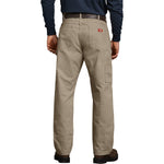Get to work in comfortable yet durable Dickies Relaxed-Fit Straight-Leg Carpenter Duck Jeans for Men. Tough 9-oz. 100% cotton duck stands up well to hard use and long days on the job; to soften the fabric, it comes garment-washed and ready to wear. Made to sit slightly below the waist, these Dickies jeans feature hand pockets, back pockets, utility pockets, and a hammer loop. The relaxed fitwith extra room through the seat and thighsensures more freedom to move. Straight leg openings fit easily over boots. Enjoy superior comfort and durability on the job with the Dickies Relaxed Fit Straight-Leg carpenter pants for men. Machine wash. Imported.