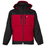 - Adjustable, tuck-away hood with visor extension and cord lock