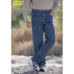 The Wrangler Rugged Wear Relaxed Fit Stretch Jeans for Men feature a pleasing relaxed feel and 80% cotton/20% polyester 11-oz. denim that lasts. The relaxed fit means they're perfect for working, camping or just hanging out outdoors, while just a hint of stretch means you can move with ease. Cross fences or hop over streams a lot easier with the built-in U-Fit crotch. No more prying pockets apart to find keys or personal items, since these jeans have easy-entry, extra-deep front pockets. Solid brass YKK zipper. Leather waistband patch. Machine wash. Imported.