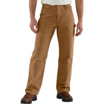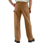Carhartt Loose-Fit Washed Duck Utility Work Pants are as comfortable as they are durable. The full seat and thighs allows for a roomy fit, and the leg openings are large enough to fit easily over your work boots. Rugged 12-oz. 100% cotton ringspun washed duck canvas with plied yarns is garment washed for softness. Bar tacks at vital stress points ensure years of durability. These Carhartt pants have 2 hand pockets, 2 reinforced back pockets, a coin pocket, a tool pocket, a hammer loop, and a ruler pocket. Machine wash. Imported.