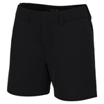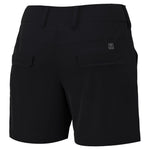 Whether on the trails or on the water, The Huk Next Level Knit-Waist Shorts for Ladies deliver the comfort and convenience you want. The knit waist is easily adjustable for the perfect chafe-free fit, while these women's shorts add 2 zip-close front pockets, a side utility pocket, and utility bungee so you're ready for any adventure. UPF 30+ sun protection guards your skin from harmful UV rays, and the Huk Next Level Knit-Waist Shorts for women are finished with a zippered fly. Made from 55% cotton/35% polyester/10% spandex. Inseam: 5". Machine wash. Imported.