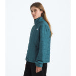 Designed to provide dependable warmth and protection in cold weather, The North Face Women's Junction Insulated Jacket features 100% recycled polyester fabric with a non-PFC durable water-repellent finish that resists moisture while maintaining breathability. The jacket is insulated with 100g of Heatseeker Eco synthetic insulation made from post-consumer recycled polyester fibers, offering lightweight yet effective thermal performance. Its quilted puffer design ensures compressible comfort without bulk. Functional details include a fleece-lined band collar for added neck warmth, secure zippered hand pockets to keep essentials safe, and stretch binding on the collar and cuffs to block drafts. The exposed front zipper is complemented by an internal draft flap for extra protection against the elements. This jacket is machine washable and designed with sustainability in mind, incorporating circular design principles to facilitate recycling at the end of its life cycle. Ideal for fall and winter outdoor activities or casual city wear, it delivers a blend of performance, comfort, and eco-conscious construction.