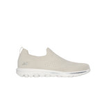 Experience effortless comfort and style with the Skechers Women's GO WALK TRAVEL - COZUMEL Slip-On Sneaker, designed for all-day wear. Featuring a laceless slip-on design with a high apex stretch knit upper, these sneakers provide a breathable and flexible fit. The Skechers Air-Cooled Goga Mat™ insole offers superior cushioning and breathability, while the lightweight ULTRA GO® midsole delivers responsive support for every step. Crafted with 100% vegan materials, this casual sneaker is perfect for daily walks and casual outings. Available in wide width to ensure an accommodating fit.