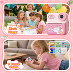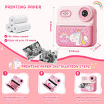 The ALLJOY Instant Print Kids Camera is an all-in-one creative tool designed to inspire young photographers and storytellers aged 3 to 12. Equipped with a high-resolution 12MP lens and the ability to record 1080P HD videos, this camera delivers sharp images and vibrant videos that children can easily capture. Its user-friendly interface features a bright 2.4-inch IPS screen and intuitive on-screen menus that make navigation simple for little hands. The camera supports up to 16X digital zoom, flash functionality, time lapse photography, continuous shooting mode, and a variety of playful photo effects including filters and frames to enhance creativity. One standout feature is its instant black-and-white photo printing capability using advanced thermal printing technology—children can print their favorite moments immediately without the need for ink cartridges. Beyond photography, the camera doubles as an entertainment device with built-in MP3 music playback and engaging mini games. Powered by a rechargeable 1000mAh battery with fast Type-C charging, it offers 2 to 3 hours of continuous use on a full charge. The comprehensive package includes a generous 64GB SD card capable of storing thousands of photos and videos, three rolls of thermal paper for printing, colored pens for decorating prints, a card reader for easy file transfer, a fun cartoon lanyard for portability, and a USB charging cable. This multifunctional camera is perfect for encouraging creativity, storytelling skills, and imaginative play in children while providing endless entertainment at home or on the go.