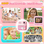 ALLJOY 202588 Instant Print Kids Camera, 12MP, 1080P HD Video, 2.4-Inch IPS Screen, 16X Digital Zoom, Thermal Black-and-White Photo Printer, 64GB SD Card Included