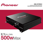 The Pioneer GM-E190X2 2-Channel Bridgeable Amplifier delivers up to 500W max power, ensuring dynamic and high-quality sound for your car audio system. With a Class AB design, this amplifier features variable low-pass and high-pass filters for customizable audio tuning. It offers versatile power output options, including 70W x 2 RMS at 4, 95W x 2 RMS at 2, and 190W x 1 RMS at 4 when bridged. Built with large-capacity electrolytic capacitors, it guarantees stable performance and rich sound. Installation is straightforward, allowing you to enhance your audio experience without replacing your stereo or adding converters.