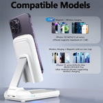 - Portable & Foldable Travel Stand: - The Wireless Portable Charger bracket material is made of metal, which is very strong. Its bracket is also foldable and easy to carry. It can be put in the handbag when going out. In addition, can also be used as a mobile phone stand. There are three axes to adjust the angle. The mobile phone can be rotated landscape, and it will keep the mobile phone charging all the time, freeing your hands. Suitable for meeting, dinner table, travel, business trip, movie and other occasions.