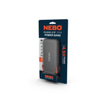 Recharge wherever you roam with the NEBO Rambler 20,000mAh Power Bank! This 20,000mAh rechargeable battery can charge a smartphone approximately 4.5 times on a single charge (results may vary), and it features both 18W Quick Charge and 20W Power Delivery. A 2-way USB-C and a USB-A ports let you recharge a variety of electronic devices, including smartwatches, cameras, headlamps, and more, and you can even charge 2 devices at once. Plus, pass-through charging allows you to charge a device while charging the Rambler itself. Digital display lets you see how much juice the Rambler has left. An integrated flashlight on the side produces a 230-lumen beam for low-light visibility in a pinch. Built-in kickstands double as a cable-management system or carabiners. Protective port cover keeps dust out. Meets TSA and FAA regulations for carry-on items. This portable charger includes a USB-C cable. 5.7"L x 2.95"W x 1.14"H. Weight: .98 lbs.