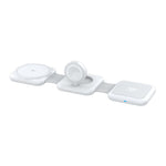 The onn Travel 3-in-1 Wireless Charging Pad is designed to simplify charging multiple devices with one compact and foldable solution. Compatible with Qi2-enabled devices, it efficiently charges your iPhone, Apple Watch, and AirPods simultaneously, delivering up to 15W of power for fast wireless charging. Its foldable design makes it ideal for travel, saving space in your bag while maintaining a sleek and organized setup. The charger supports magnetic phone charging and includes foreign object detection to ensure safe operation. The included 30W AC adapter and USB-C to USB-C cable provide reliable power input options. This all-in-one charging pad helps reduce clutter by consolidating your essential device chargers into one portable unit, making it perfect for users who need efficient power on the go.