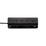 The APC BW650U1 Uninterruptible Power Supply (UPS) delivers dependable battery backup and surge protection for critical electronics such as computers, routers, and other network devices. With a power capacity of 650VA and 330W, this compact UPS ensures your devices remain operational during power interruptions or fluctuations. It includes seven total outlets: five provide battery backup combined with surge protection to maintain device functionality during outages, while two additional outlets offer surge protection only for less critical equipment. The unit also features a built-in USB charging port rated at 2.1 amps, allowing you to conveniently charge smartphones, tablets, or other USB-powered devices without occupying an outlet. Designed for both home offices and professional settings, the BW650U1 helps prevent data loss and hardware damage by providing consistent power supply and safeguarding against electrical surges. Its compact design fits easily into any workspace while delivering essential power continuity and protection.