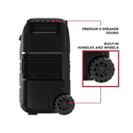 The ION Audio Tailgater XL is a powerful portable speaker featuring a premium 5-speaker system that delivers omni-directional sound, projecting audio evenly in all directions. Equipped with Bluetooth 5.3, it offers seamless and long-range wireless connectivity for uninterrupted music streaming. Its rechargeable battery supports extended playtime, making it perfect for outdoor events and parties. Built with an IPX5 water-resistant rating, the Tailgater XL withstands various weather conditions. Additional features include Touch FX Technology with 40 unique sound effects, built-in FM radio with presets, customizable EQ settings, microphone and instrument inputs, USB-A charging support, and the ability to pair two speakers for immersive stereo sound.