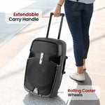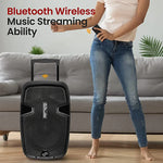 Complete pa kit: Pyle offers the ultimate pa loudspeaker set for public gatherings, crowd control and Karaoke! Includes Bluetooth PA speaker w/ convenient rolling wheels and handle, 2 UHF wireless mic, remote control, power/charging cable, batteries.