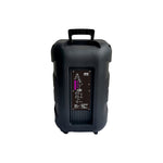 The QFX PBX-1206SM is a rechargeable, 12-in. Bluetooth party speaker that offers an FM radio, USB/microSD Card media player, treble and bass controls, microphone echo control, and RGB party lights. Play music wirelessly in Bluetooth mode or connect directly to either the USB/microSD Card slots or aux input. This system includes a wired microphone and tripod speaker stand to kick off your next party. Add a second PBX-1206SM (sold separately) and enjoy True Wireless Stereo (TWS) sound.