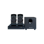 Check out the Emerson™ 2.1-channel home theater DVD/speaker system! This home theater is in a box with a DVD digital player and a 2.1-channel speaker system. Experience surround-sound movie effects at home with the two full-range speakers, a subwoofer, and the attractive and slim DVD player with flexible connection options. Connection options include component, composite, s-video, coaxial digital audio, and RCA 2.1 channel audio output.
