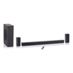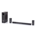 37" soundbar system with 4 Internal speakers, 2 surround sound speakers, and 1 wireless subwoofer