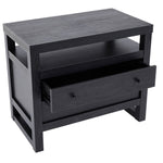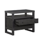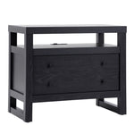 The Better Homes & Gardens Ezra 2-Drawer Nightstand combines contemporary design with everyday convenience. Crafted from durable wood composite with a rich black finish, this nightstand features a distinctive geometric frame that adds visual interest to any bedroom or living space. Its strong yet lightweight 2-inch panel construction ensures both stability and easy mobility. The nightstand offers two spacious drawers equipped with pre-installed metal ball-bearing slides for smooth and effortless access to your essentials. An open shelf provides additional storage space for books or decorative items. For enhanced functionality, the nightstand includes two USB ports—one Type A and one Type C—along with a 3-prong outlet, allowing you to charge phones, tablets, or plug in lamps without cluttering your space with extra cords. Finished on all sides, this versatile piece can be placed anywhere in your home to complement your décor while keeping your necessities within reach.