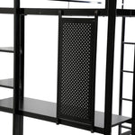 This loft bed is perfect for small bedrooms or apartments, as it provides a personal workstation and maximizes your space. The desk and shelves are made of thickened metal board, which provides better weight capacity and durability. The full-length guardrails and two built-in ladders ensure your safety and convenience. No box spring is needed, just place your mattress on top and enjoy a good night's sleep.