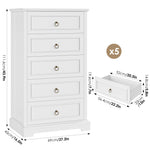 Homfa HOS-PB-168 5 Drawers Tall Dresser, Chest of Drawers Storage Bedroom Dresser Cabinet for Closet Living Room, White