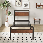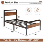 The Lutown-Teen Twin XL Bed Frame features a robust metal platform paired with a rustic mahogany wood headboard and footboard, blending durability with classic style. Engineered to support mattresses sized 80" x 38", it accommodates up to 1500 pounds, making it suitable for various mattress types including memory foam, latex, or spring mattresses without requiring a box spring. The reinforced steel slats provide firm, even support while minimizing noise during use. Designed with a compact square frame structure and equipped with anti-slip plastic foot pads, this bed frame protects floors from scratches and enhances stability. Its low-profile design adds a modern touch while fitting seamlessly into any bedroom decor. Assembly is straightforward with all parts, tools, and clear instructions included in one package, allowing for quick setup. This heavy-duty bed frame offers long-lasting performance and comfort for restful sleep.