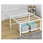 efoso metal bed frame boasts a sleek modern design that doesn t compromise on stability. Its reinforced steel frame can securely support any latex spring or memory foam mattress without the need for an additional box spring. With its overall robust construction and clean lines this frame seamlessly blends with the style of any room. The spacious storage space under the bed is perfect for storing extra bins and boxes. It is an ideal choice that not only saves space but also provides a comfortable sleeping experience. Suitable for adults youth kids holds up to 700 lbs.