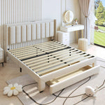 UHOMEPRO Queen Size Upholstered Platform Bed Frame with Headboard provides a modern style and creates a unique sense of exquisiteness for your bedroom. Break the boundaries of comfort! The padded headboard offers extra comfort and adds a hint of glamour. We use an upholstered headboard made with premium fabric. Providing you with superior support and ultimate comfort. Attached with Led Light, this upholstered bed frame provides a stylish modern style in a glamorous way. The uniquely designed slat Velcro and non-slip feet protect the floor from scratches and minimize noise disturbances, allowing you to enjoy a peaceful resting environment. We provide a full set of tools and a detailed installation manual for easy assembly. Add a touch of luxury and comfort to your home by choosing our bed frame. Enjoy an unrivaled resting experience!