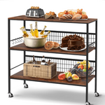 CoPedvic 40" Rolling Kitchen Storage Cart Island with Shelves, Copedvic 3-Tier Kitchen Bakers Rack with 10 Hooks eep your cookware, baking utensils, and barware handy and organized with this basic kitchen island! Crafted from solid rubberwood in a natural wood grain finish for the countertop, and painted wood frame, its base features a wide drawer and two shelves that offer decent space for all your essentials. The spacious 40" x 15" x 35" countertop gives you extra elbow room while prepping lunches and dinners. This kitchen cart conveniently features four caster wheels below that offer smooth rolling.
