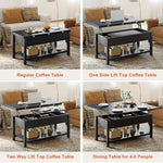 DOVEAID 41.73"Lift Top Coffee Table,4 in 1 Multi-Function Convertible Coffee Table with Hidden Storage Modern Framhouse Coffee Table for Living Room Black