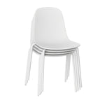 The Mainstays Modern Stackable Dining Chairs set offers a perfect blend of contemporary style and practical functionality. Crafted with a smooth curved plastic backrest and robust metal legs finished in white, these chairs provide a comfortable seating experience suitable for everyday use. Each chair supports up to 250 pounds, ensuring reliable strength and stability. The stackable design allows for compact storage when not in use, ideal for saving space in smaller rooms or for occasional extra seating needs. Their clean white finish adds brightness and versatility to any interior setting, seamlessly fitting into modern or transitional decor themes. These chairs are easy to maintain with simple spot or wipe cleaning methods and come with straightforward assembly instructions for quick setup. Whether used around the dining table or as additional seating in living spaces or bedrooms, this set of four chairs combines style, comfort, and convenience.