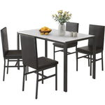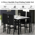 Paproos J457 Modern 5-Piece Kitchen Table Set with Faux Marble Top and Leather Upholstery Chairs, Style A, Black+White