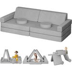 0Pcs Modular Kids Sofa, 65.4" Kids Play Couch DEYGIA modular kids' couch offers instant enjoyment with its compressed packaging; just wait 30 minutes after unpacking, and the sponge elasticity will surprise you. The 10-piece set includes 4 basic seat cushions, 2 armrests, 2 trapezoidal cushions, and 2 round seat cushions, allowing for versatile combinations. This couch not only serves as a seating area but also transforms into playrooms, rocket ships, fortresses, tunnels, beds, and more, stimulating toddlers' imagination and creativity. It's a perfect gift for birthdays and Christmas.