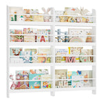 The Homfa 4-Tier Wall Bookshelf combines functionality and style to create an ideal storage rack for children's rooms, bedrooms, or play areas. Crafted from premium medium-density fiberboard with a moisture-resistant spray paint finish, this bookshelf is both durable and safe for kids. Its vertical wall-mounted design maximizes floor space while providing ample room with four shelves capable of holding at least 25 children's books along with toys and decorative items. The smooth, rounded edges protect children from bumps, and the wooden railing on each shelf prevents items from falling. Installation is straightforward with all necessary mounting hardware and clear instructions included, allowing one adult to assemble it quickly. The open-back style complements contemporary decor while making it easy to clean with a damp cloth. This bookshelf not only organizes belongings but also encourages children to cultivate reading habits by keeping books within easy reach.