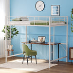 Designed for safety and space efficiency, the Zimtown Full Loft Bed is crafted from solid iron with a durable white finish. The bed frame includes full-length guardrails to prevent falls and metal slat support that enhances load capacity up to 400 lbs on the upper bunk. Standing 71.26 inches tall with a bed surface height of 56 inches from floor to slats, it provides generous under-bed clearance perfect for creating a play area, study space, or additional storage. The twin-sized bed fits mattresses between 5 to 8 inches thick and features ladders on both ends for convenient access tailored to various room layouts. Assembly is straightforward with clearly labeled parts and instructions included. This loft bed is an excellent choice for maximizing room space while ensuring safety and comfort for children.