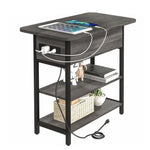 The Yoobure End Table with Charging Station combines functionality with elegant design, making it an ideal piece for living rooms, bedrooms, or compact spaces. Constructed from durable particle board supported by a robust steel frame, this table ensures long-lasting sturdiness and can hold up to 100 lbs on its surface. The integrated ETL certified charging station on the vertical side allows simultaneous charging of up to four devices through USB ports and power outlets, catering to your electronic needs conveniently. The table features a hidden flip-top drawer for discreet storage alongside two open wood shelves that offer ample space for books, decor, or essentials. Its retro-inspired three-tier wood design complements various interior styles while adding a warm and inviting touch. Rounded corners and smooth edges enhance safety by preventing injuries, making it suitable for homes with children or pets. Equipped with a 6.5-foot power cord, this end table ensures flexible placement near power sources without clutter. Whether used as a bedside table or living room accent piece, it provides both practical storage and modern convenience in a compact footprint.