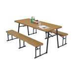 Living & More MSF5362500861DB 3-Piece Picnic Table Set, 6 Foot Polyethylene Folding Table with 2 Folding Benches, Weather Resistant, Dark Brown Wood Finish with Black Metal Legs