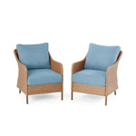 Enhance your outdoor living area with the Mainstays Chelsea Outdoor Patio Steel 4-Piece Deep Seating Set. This set includes a loveseat, two chairs, and a rectangular coffee table designed to seat four comfortably. The furniture features handwoven all-weather PE wicker that withstands outdoor elements while maintaining its attractive appearance. The steel frames are e-coated and powder-coated to resist rust and ensure long-lasting durability. The Olefin fabric cushions provide plush comfort with fade- and water-resistant properties, making them ideal for outdoor use. The coffee table showcases a faux wood grain finish that offers the warmth of wood without the upkeep, combining style with practicality.