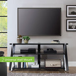 The Whalen 3-in-1 Flat-Panel TV Stand is perfect for flat-screen TVs and offers convenient storage for media components, games, DVDs and more. The TV Stand is suitable for TVs up to 70 inches in size, and has a weight capacity of 135 pounds. It includes a swivel system that helps angle the television by 45 degrees on both directions for easy viewing. It also has the versatility to be used as a tabletop stand, universal TV wall mount, or as a swinging floater and comes with a floor leveling system. This glossy black and silver flat-screen construction features tempered glass shelves to hold your A/V components or video game consoles. The stand also provides concealed cable management, for a clutter-free home theater set-up.
