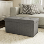 Bring the best of style and function to your home with the End of Bed Storage Bench by Lavish Home. This comfortable storage ottoman bench features a premium woven polyester outer cover with a highly resilient foam padded button-tufted cushioned lid that can be folded flat when not in use for convenient storage, making it ideal for dorms, RVs, and small apartments. This multipurpose large ottoman is great for use as a footrest, end-of-bed storage, toy chest, and more.