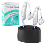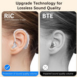 [Comfortable to Wear]: The hearing aids feature an ergonomic design, with a slim and lightweight body and soft ear cushions. They offer a comfortable, discreet, and aesthetically pleasing fit. They support 360° rotation and adjustable angle, eliminating the need for a left-ear/right-ear distinction. This provides a comfortable wearing experience, even for extended periods.